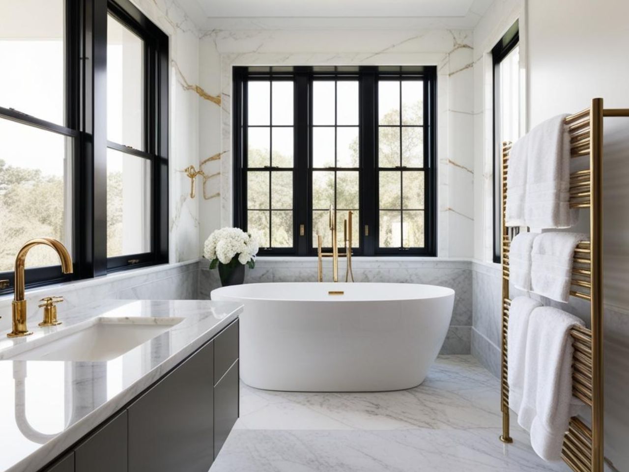 Bathrooms are echo chambers. We recommend installing solid-core doors and insulation in the walls to provide privacy and a quiet luxury feel.