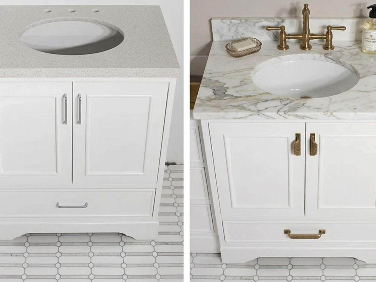 You don't always need a custom-built vanity. You can buy a high-quality readymade unit and "312-brand" it by swapping the hardware for designer brass or matte black pulls, or adding a custom stone remnant on top. Also, many big-box store vanities use MDF (medium-density fiberboard) or particle board, these materials simply don't hold up in the high-moisture environment of a bathroom. Over time, steam and splashes cause MDF to swell, peel, and delaminate.